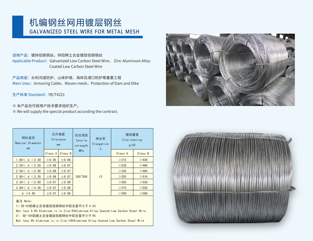 通信光電纜用鍍鋅鋼絲通信光電纜用鍍鋅鋼絞線機(jī)編鋼絲網(wǎng)用鍍層鋼絲防振錘用鋼絞線一般用途鍍鋅及鍍鋅鋁合金鍍層鋼絲及鋼絞線預(yù)絞式金具用鍍層鋼絲制釘用鍍層鋼絲